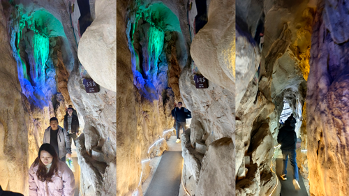 傍晚,大家深入观音洞,感受大自然的鬼斧神工。踏入天然溶洞,形态各异的钟乳石让人叹为观止。在五彩斑斓的溶洞内,沿着“好汉坡”向上攀登,大家三三两两结伴而行,探讨着钟乳石的形成奥秘,分享着工作生活中的点滴感悟。这份自然而然的融洽,远比任何刺激项目更让人难忘。